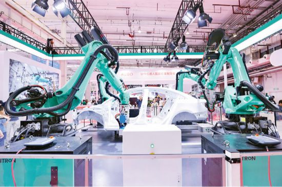 隨著信息化、工業(yè)化不斷融合,以機器人科技為代表的智能產(chǎn)業(yè)蓬勃興起,成為現(xiàn)時代科技創(chuàng)新的一個重要標(biāo)志。一路前行,我國機器人產(chǎn)業(yè)從小到大、從大到強,以空前的廣度和深度融入人們的生產(chǎn)生活。如今,我國已經(jīng)成為全球最大的機器人市場和生產(chǎn)國。圖為2024年8月22日,在北京舉辦的2024世界機器人大會上,機器人正在進行汽車四機點焊作業(yè)展示。 人民圖片 陳曉根/攝