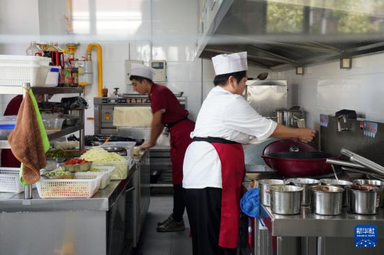 9月22日,在新疆喀什市東湖社區(qū),工作人員在社區(qū)“爸媽食堂”準(zhǔn)備午餐。“爸媽食堂”在收費(fèi)上對(duì)60歲以上的社區(qū)老人有不同程度的補(bǔ)貼,90歲以上社區(qū)老人可免費(fèi)享用一日三餐。新華社記者 趙宇思 攝