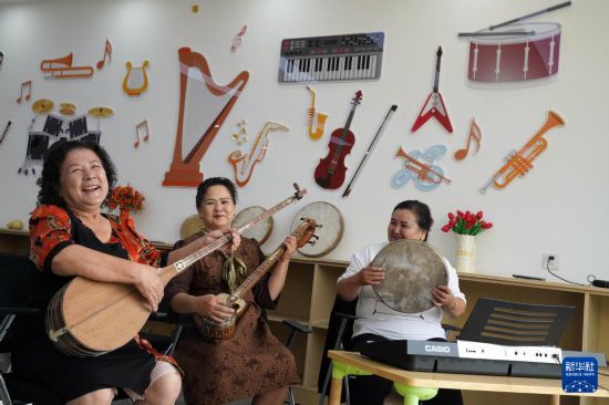 9月22日,在新疆喀什市東湖社區(qū)市民中心,社區(qū)居民在音樂(lè)室練習(xí)傳統(tǒng)樂(lè)器演奏。新華社記者 趙宇思 攝