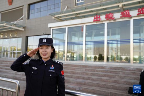 9月20日,新疆出入境邊防檢查總站紅其拉甫邊檢站民警張瑾在口岸執(zhí)勤。新華社記者 趙宇思 攝