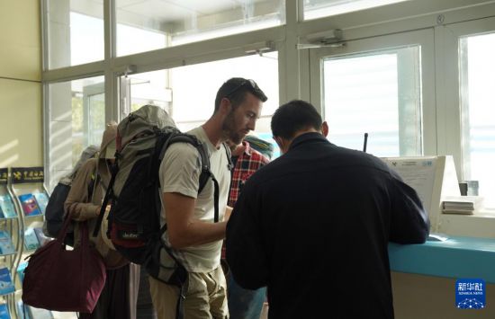9月20日,新疆出入境邊防檢查總站紅其拉甫邊檢站民警協(xié)助一位瑞士籍入境旅客。新華社記者 趙宇思 攝