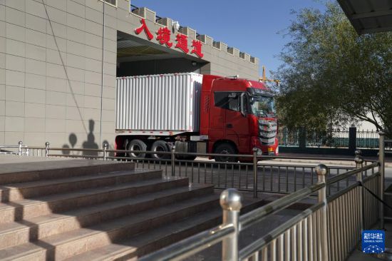 9月20日,一輛貨車從紅其拉甫口岸入境通道駛過。新華社記者 趙宇思 攝