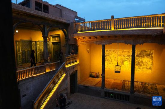9月19日晚,在新疆喀什古城景區(qū),游客在“買買提的老房子”參觀游覽。買買提的老房子是一座有著300多年歷史的民居,房間高低錯落、空間層次豐富。新華社記者 趙宇思 攝