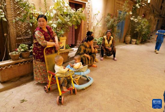 9月19日晚,居民在新疆喀什古城景區(qū)納涼、休閑。喀什古城既是景區(qū),也是居住區(qū)。新華社記者 趙宇思 攝