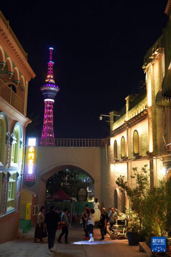 9月19日晚,游客在新疆喀什古城景區(qū)游覽。新華社記者 趙宇思 攝