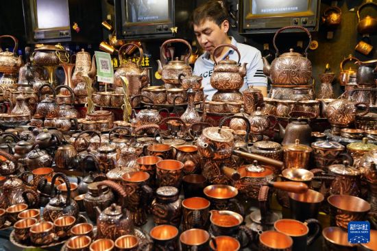 新疆喀什古城內(nèi)琳瑯滿目的銅器商品(9月19日攝)。新華社記者 趙宇思 攝