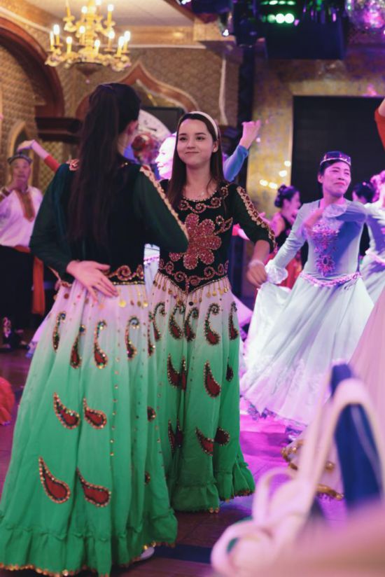 9月25日,在王三街“民族團結一家親”餐廳,各民族群眾在一起跳舞。新華社記者 任沁沁 攝