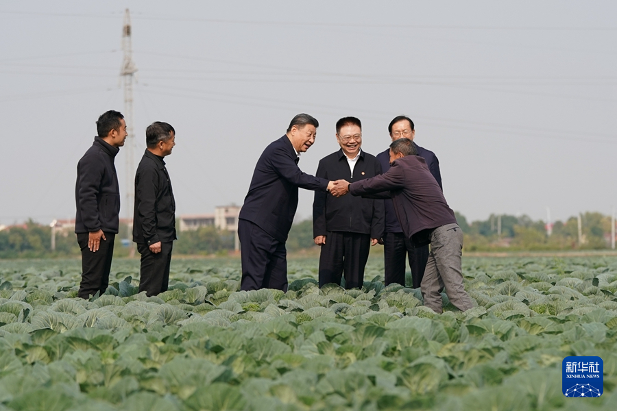 11月4日至6日,中共中央總書記、國家主席、中央軍委主席習(xí)近平在湖北考察。這是5日上午,習(xí)近平在咸寧市嘉魚縣潘家灣鎮(zhèn)十里蔬菜長廊考察時,同菜農(nóng)親切交流。