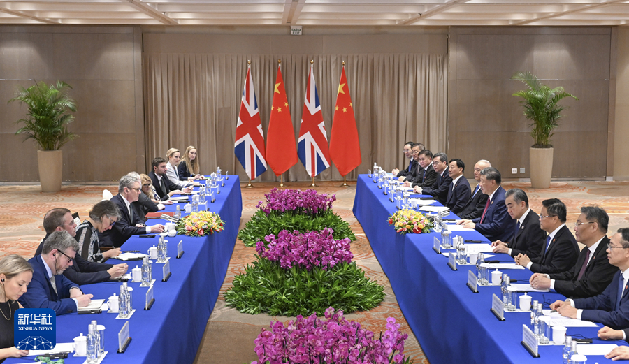 當(dāng)?shù)貢r(shí)間11月18日上午,國(guó)家主席習(xí)近平在里約熱內(nèi)盧出席二十國(guó)集團(tuán)領(lǐng)導(dǎo)人峰會(huì)期間會(huì)見(jiàn)英國(guó)首相斯塔默。