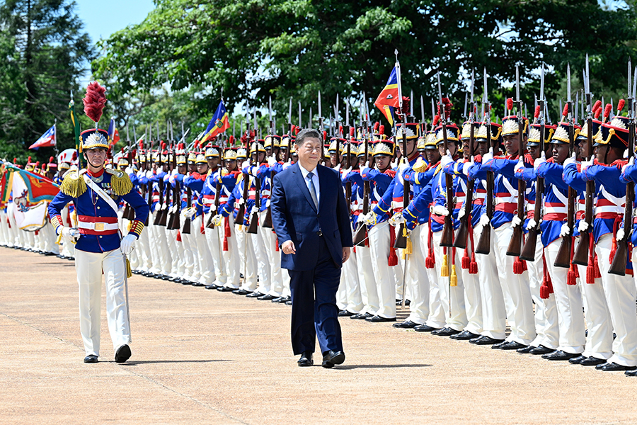當(dāng)?shù)貢r(shí)間11月20日上午,國(guó)家主席習(xí)近平在巴西利亞總統(tǒng)官邸黎明宮同巴西總統(tǒng)盧拉舉行會(huì)談。會(huì)談前,盧拉總統(tǒng)和夫人羅桑熱拉熱情迎接習(xí)近平,并為習(xí)近平舉行隆重盛大歡迎儀式。