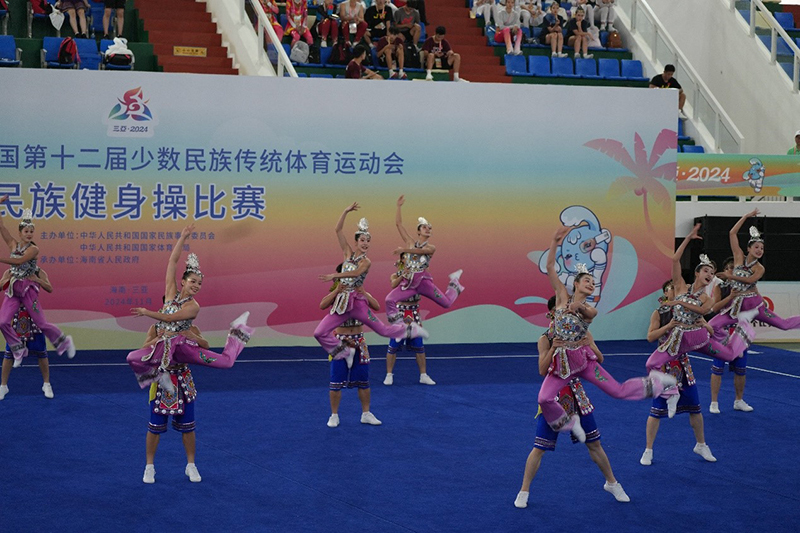 民族健身操項(xiàng)目湖南省代表隊(duì)表演現(xiàn)場(chǎng)。馬那甫攝