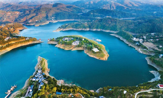 新時代以來,在習(xí)近平生態(tài)文明思想科學(xué)指引下,生態(tài)文明建設(shè)從理論到實踐都發(fā)生了歷史性、轉(zhuǎn)折性、全局性變化,生態(tài)文明體制改革縱深推進,生態(tài)文明制度體系基本形成,生態(tài)環(huán)境質(zhì)量持續(xù)改善。陜西省安康市多年來通過建立“河湖長制+志愿者”護河機制,扎實推進漢江水質(zhì)保護工作,使?jié)h江出境斷面水質(zhì)穩(wěn)定保持國家地表水Ⅱ類標(biāo)準(zhǔn)。圖為2024年11月2日拍攝的安康漢江瀛湖庫區(qū)景色(無人機照片)。 新華社記者 邵瑞/攝