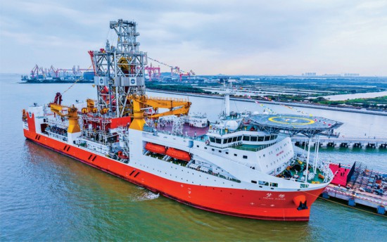 2024年11月17日,擁有最大11000米的鉆深能力、我國自主設(shè)計(jì)建造的首艘大洋鉆探船“夢想”號在廣州正式入列,標(biāo)志著我國深海探測關(guān)鍵技術(shù)裝備取得重大突破。圖為當(dāng)日拍攝的靠泊在廣州海洋地質(zhì)調(diào)查局科考碼頭的大洋鉆探船“夢想”號。 新華社記者 劉大偉/攝