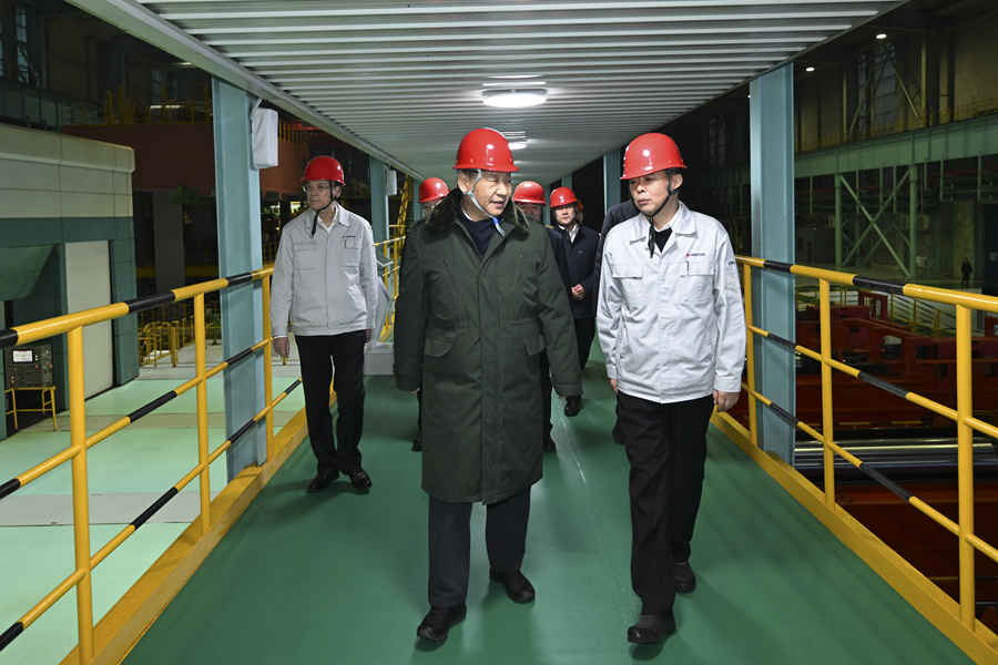 1月22日至24日,中共中央總書記、國家主席、中央軍委主席習(xí)近平冒著嚴(yán)寒來到遼寧,看望慰問基層干部群眾。這是23日下午,習(xí)近平在本溪市考察本鋼板材冷軋總廠第三冷軋廠車間。