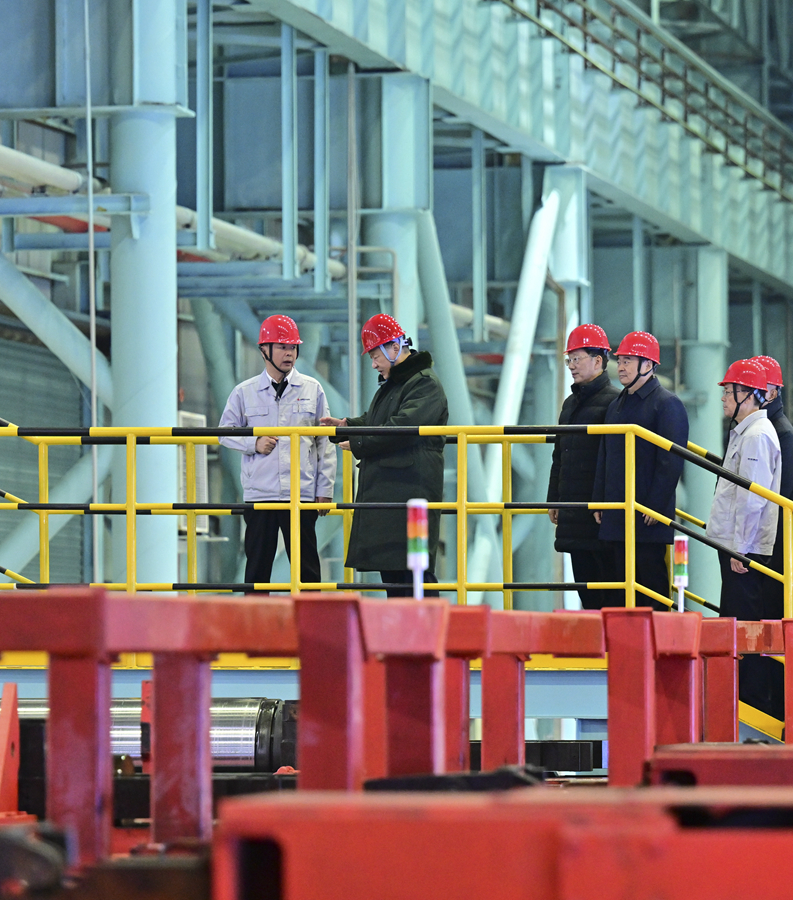 1月22日至24日,中共中央總書記、國家主席、中央軍委主席習(xí)近平冒著嚴(yán)寒來到遼寧,看望慰問基層干部群眾。這是23日下午,習(xí)近平在本溪市考察本鋼板材冷軋總廠第三冷軋廠車間。