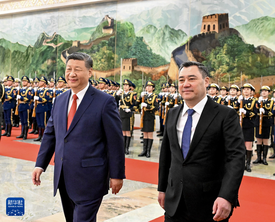 2月5日上午,國(guó)家主席習(xí)近平在北京人民大會(huì)堂同來(lái)華進(jìn)行國(guó)事訪問(wèn)的吉爾吉斯斯坦總統(tǒng)扎帕羅夫舉行會(huì)談。這是會(huì)談前,習(xí)近平在人民大會(huì)堂北大廳為扎帕羅夫舉行歡迎儀式。