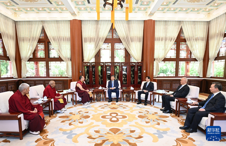 6月6日,中共中央總書記、國(guó)家主席、中央軍委主席習(xí)近平在北京中南海接受班禪額爾德尼·確吉杰布拜見。