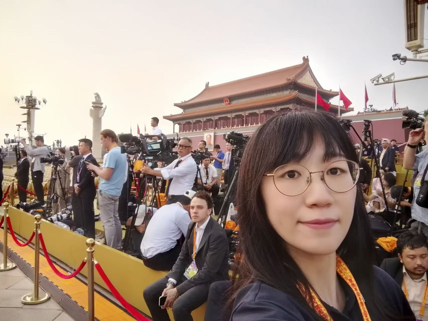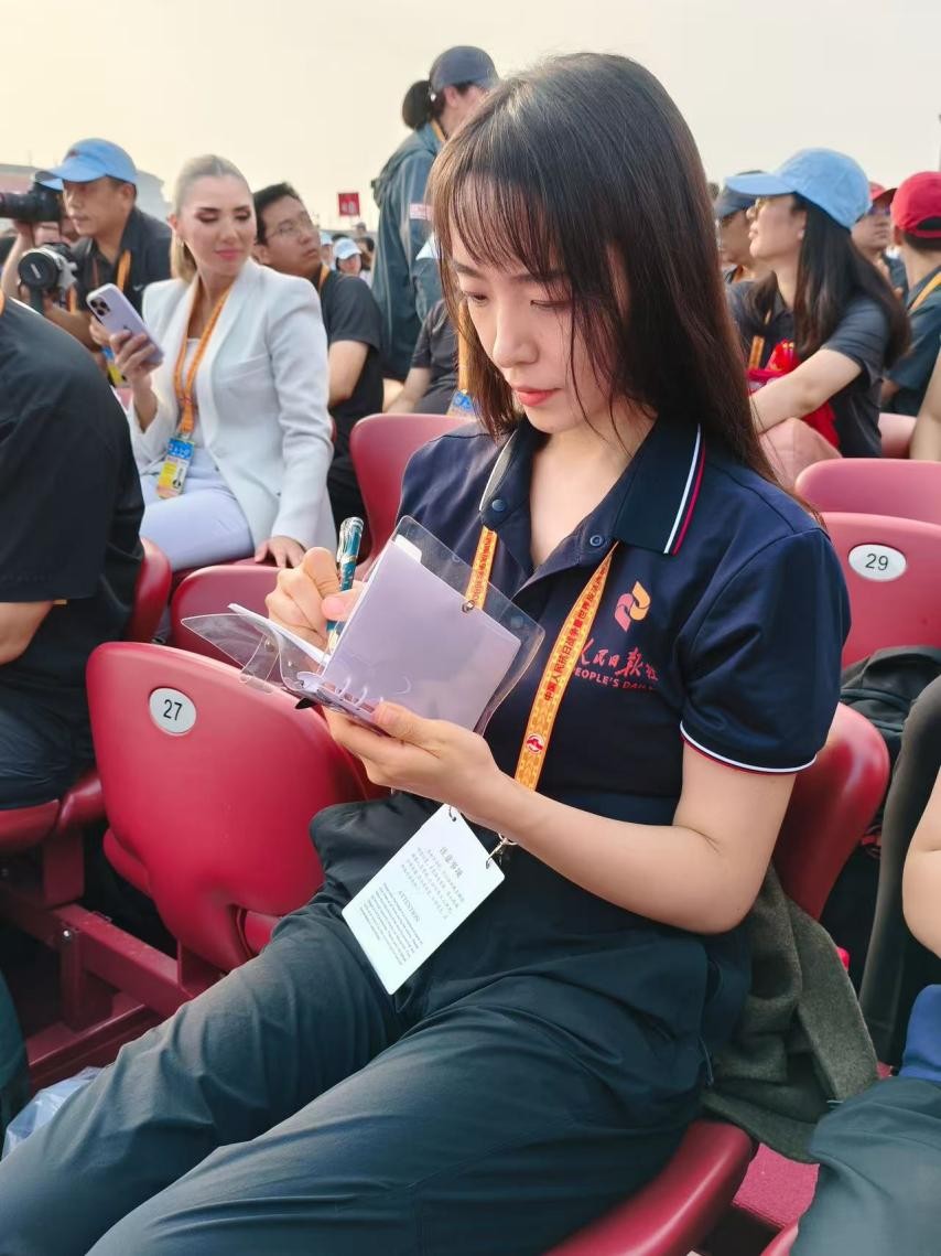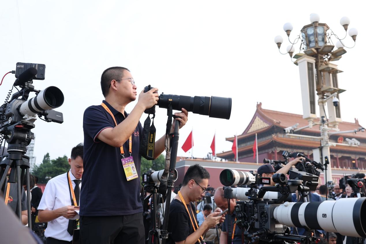 紀(jì)念大會9時正式開始,我和來自海內(nèi)外的媒體記者們站定各自點位,每一個人都進入了“戰(zhàn)斗狀態(tài)”:架起長槍短炮,“爭先恐后”,只為定格最精彩的歷史瞬間。