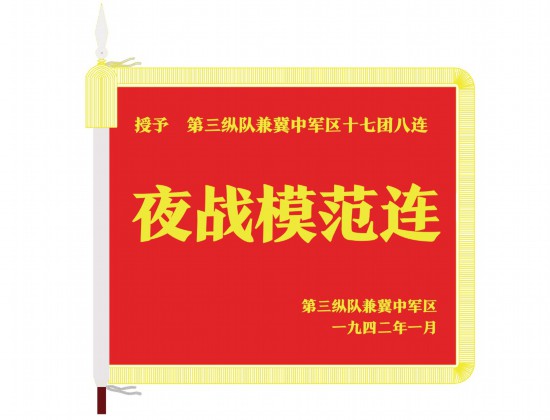 簡介:1940年12月,八路軍第3縱隊兼冀中軍區(qū)17團8連轉戰(zhàn)河北宣村,擔負平漢鐵路伏擊日軍列車任務。戰(zhàn)斗中,連隊充分發(fā)揮夜戰(zhàn)特長,通過引爆炸藥使日軍列車脫軌,乘夜暗和火力掩護迅速沖上列車,全殲日軍殘部,繳獲大量軍用物資,自身無一傷亡。1942年1月,第3縱隊兼冀中軍區(qū)授予該連“夜戰(zhàn)模范連”榮譽稱號。