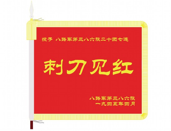 簡介:1945年4月,八路軍第129師386旅20團7連,隨團參加豫北戰(zhàn)役毛莊戰(zhàn)斗,全連官兵英勇頑強、浴血奮戰(zhàn),在子彈打光的情況下,與日偽軍進行激烈白刃戰(zhàn),經(jīng)過一番殊死搏斗,日偽軍最終倉皇后撤,為豫北戰(zhàn)役第一階段目標(biāo)的實現(xiàn)作出突出貢獻。戰(zhàn)后,386旅授予該連“刺刀見紅”榮譽稱號。