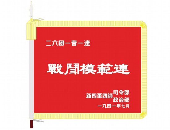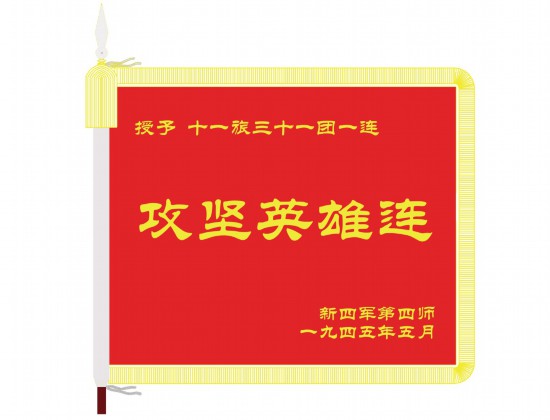 簡介:1945年5月,新四軍第4師11旅31團1連隨團參加宿南戰(zhàn)役。戰(zhàn)斗發(fā)起后,全連官兵敢打硬拼、勇猛沖殺,連隊司號員在戰(zhàn)友掩護下,冒著槍林彈雨架梯攀上炮樓,用手榴彈攻擊偽軍,迫使偽軍32人投降。經(jīng)過2個多小時激戰(zhàn),連隊和友鄰部隊全殲當(dāng)面?zhèn)诬?。?zhàn)后,新四軍第4師授予該連“攻堅英雄連”榮譽稱號。