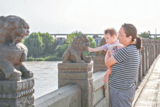 游客在盧溝橋游覽。 本報(bào)記者 武亦彬攝