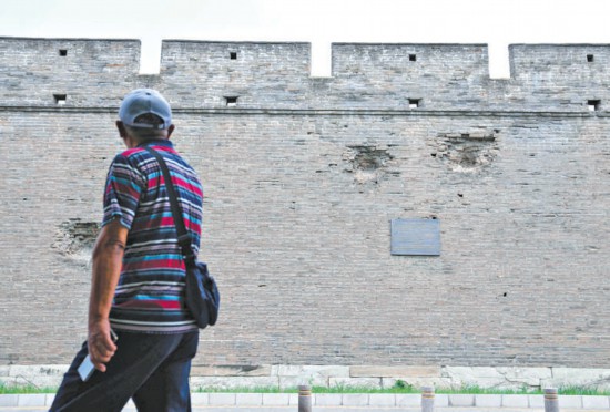 宛平城城墻上日軍彈坑。 本報(bào)記者 劉平攝